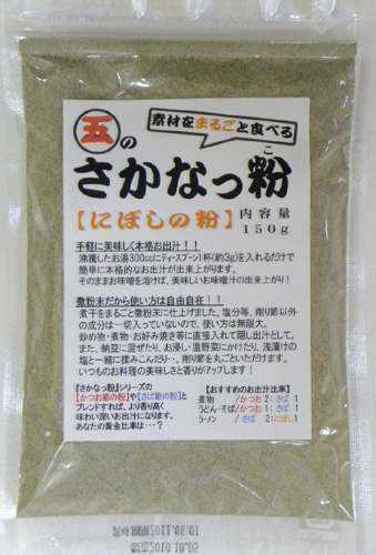 素材をまるごと食べるさかなっ粉シリーズ!!沸騰したお湯にさっと入れるだけで簡単にお出汁がとれます。いつもの料理のかくし味としても最高!! 旨みもワンランクアップしちゃいます。原材料名 : かたくちいわしのにぼし(国内産)主要産地 : 長崎県・佐賀県